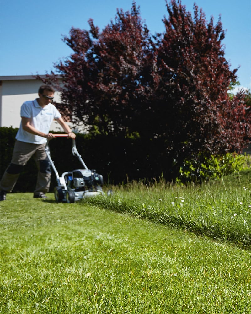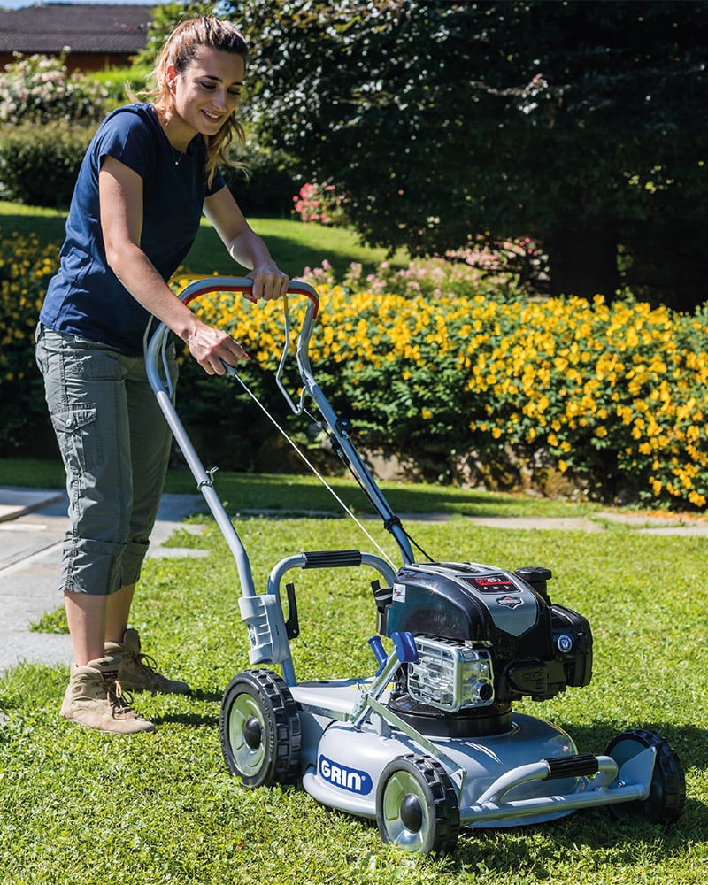 La acción combinada del SISTEMA DE CORTE GRIN para césped y poda permite reducir considerablemente el uso de agua y fertilizantes.