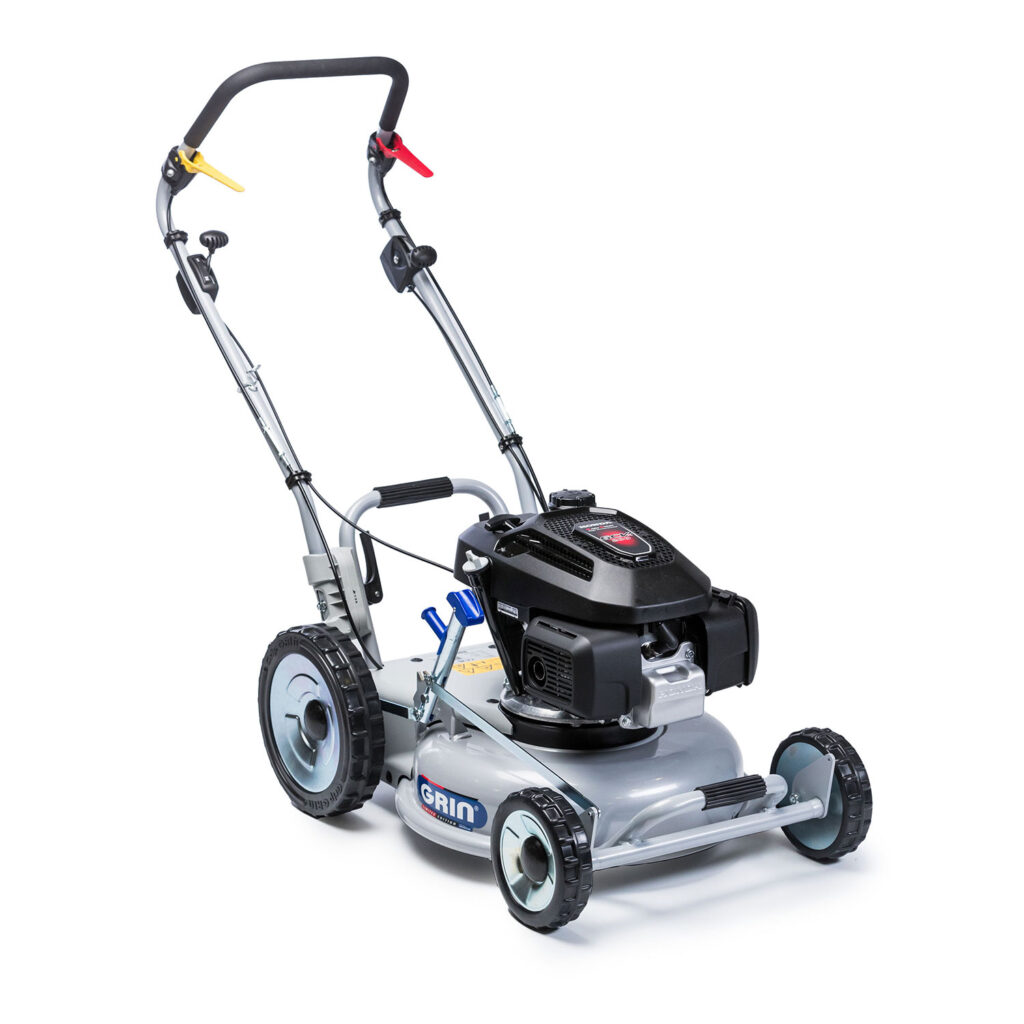 Los cortacéspedes con recogida suelen ser más pesados, sobre todo cuando la cesta está llena de hierba. Se necesita tracción para moverlos a partir de 400 metros cuadrados o en pendientes suaves. Con GRIN, la máquina sin tracción es más manejable en espacios reducidos y al maniobrar. Se recomienda una máquina de empuje GRIN hasta 800 m2 y pendientes de 10°.