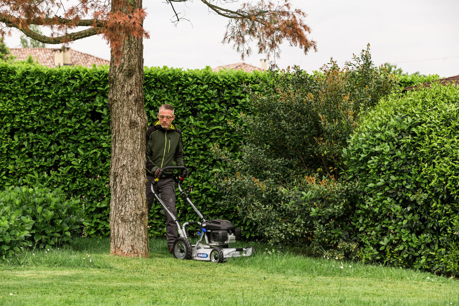 El innovador diseño de la tracción, apoyado en los “ejes suspendidos” de GRIN, aumenta la resistencia a los impactos y preserva el mecanismo a lo largo del tiempo. Ideal para el mantenimiento profesional, es una máquina que da lo mejor de sí en situaciones difíciles. Los mantenedores que lo utilizan se asombran de su capacidad pulverizadora incluso en hierba alta y húmeda.
